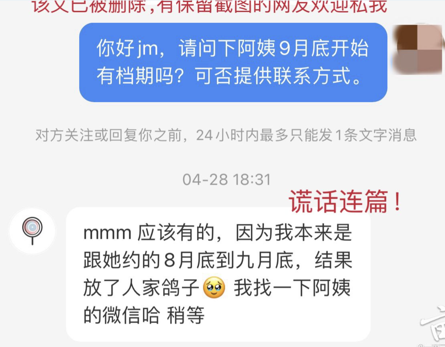 生产前一周放鸽子,且态度非常理直气壮,说家里人出车祸了需要她本人解决。但也没拿什么证据。