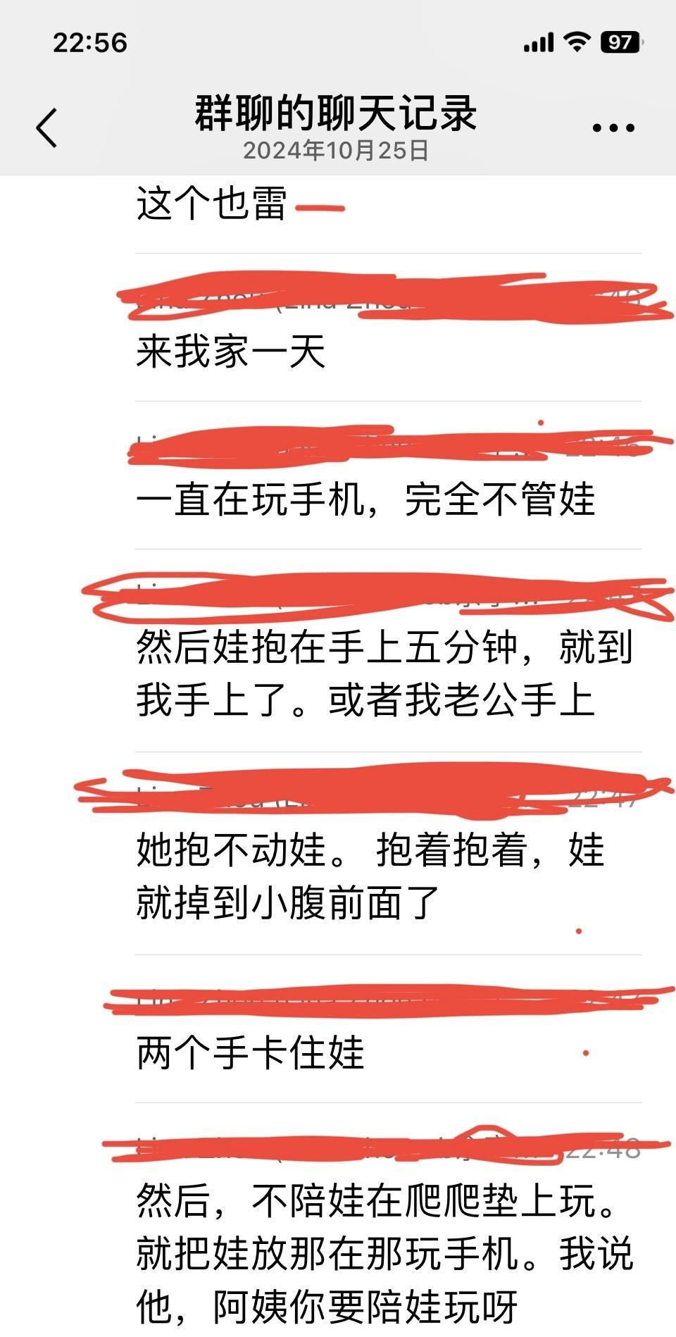 很会 PUA 宝妈妈,找机会省事,看人下菜。带娃期间喜欢看手机,带娃出门基本就是打电话,宝宝尿湿床没发现,红屁屁。很会拉关系。