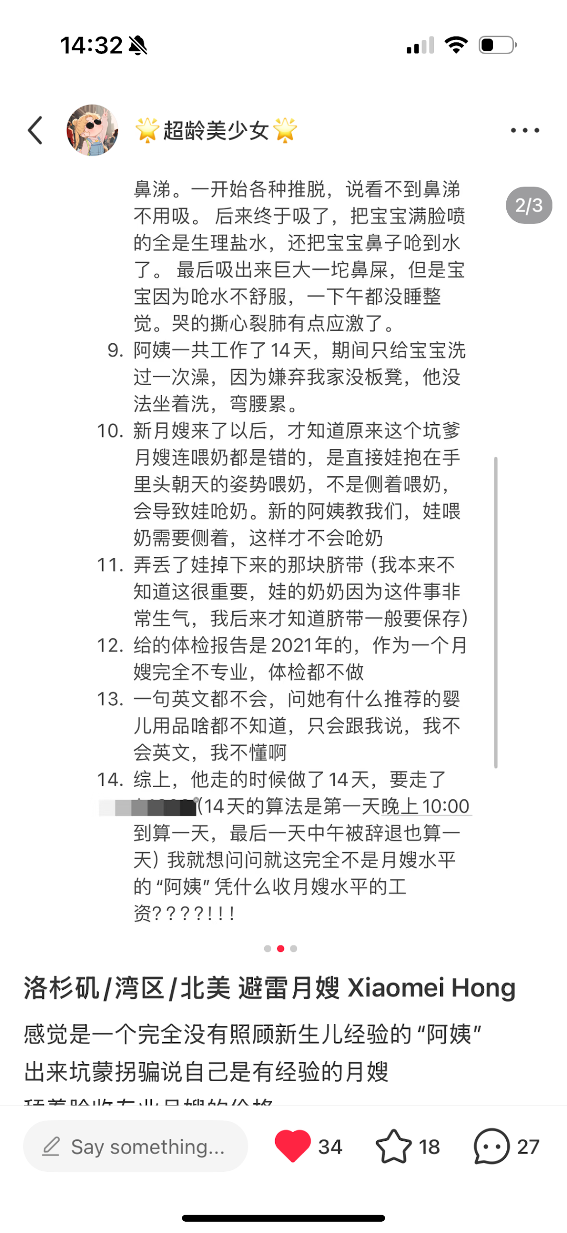 PM 我避雷北美月嫂 5 星好评坑 b 故意隐瞒阿姨!¶